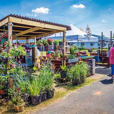 Traveling south on Highway 167 turn right onto Highway 151 in Dubach. Go 1 mile and veer to your left and continue on Hwy 151. Go 5.0 miles and turn left onto California Plant Rd. Big Creek Trade Days is .3 miles on your left.